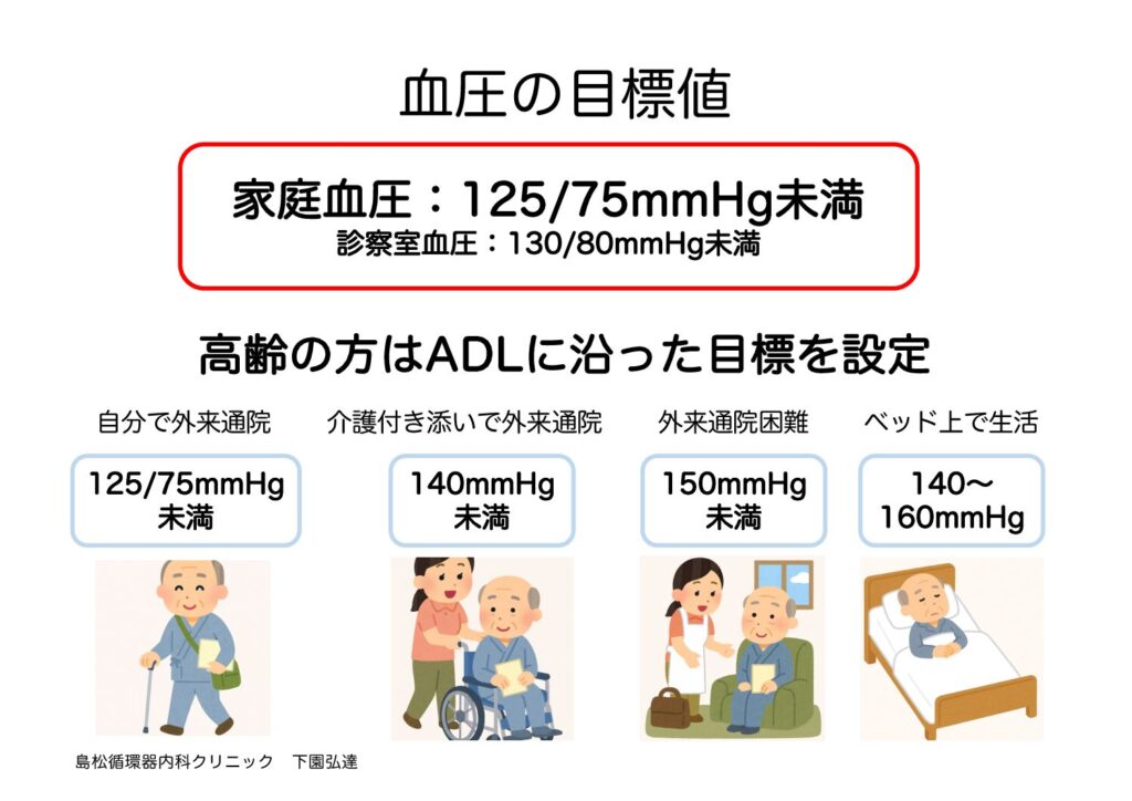 家庭での測定値は診察室より少し低く出るため、目標値も低めに設定されています。